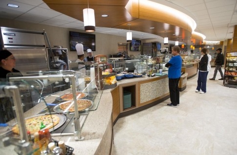 At Bryan East Campus, guests and staff can find a new and improved cafeteria that hardly resembles a hospital setting. This cafeteria offers additional seating, an aquarium, couches and even digital menu displays. Sampson Construction attended the ribbon cutting on February 1, 2016, along with other members of the Lincoln community.