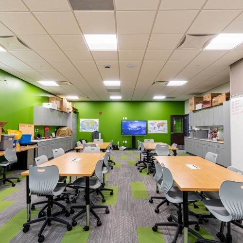 The new Boys & Girls Club of Douglas facility offers the youth of Douglas, Wyoming a safe and skill building space to spend time. Just over 13,000 SF, the club features administrative space, a teen center, arts and crafts area, tech room, game area, kitchen and a gymnasium with a climbing wall. The site also houses a playground area, multi-level play structure and a playing field. Bright and vibrant colors were used throughout the building to support the encouraging and positive environment of the club.