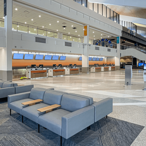 This increased efficiency lets the airport dedicate more space to passenger services, and increases comfort. Before the security line, the expanded available space will permit TSA agents to perform more and better prescreening checks. Post-security, in addition to adding two new gates to accommodate increased traffic, the refurbished terminal includes food and beverage service, including the Flyers’ Club. The overall experience will be faster, cleaner, and more efficient for travelers.